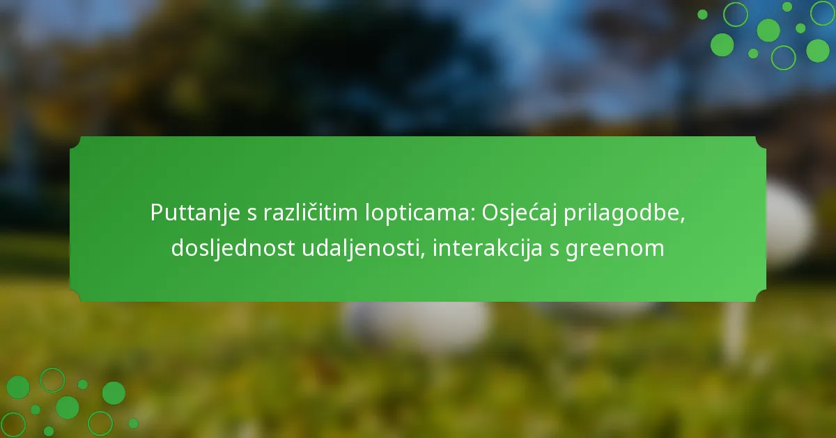 Različite golf loptice značajno utječu na osjećaj tijekom puttiranja, utječući na kontrolu udaljenosti i interakciju s greenom. Mekane loptice pružaju ublažen osjećaj, dok tvrde loptice nude više povratnih informacija, utječući na to kako igrači prilagođavaju svoje tehnike.